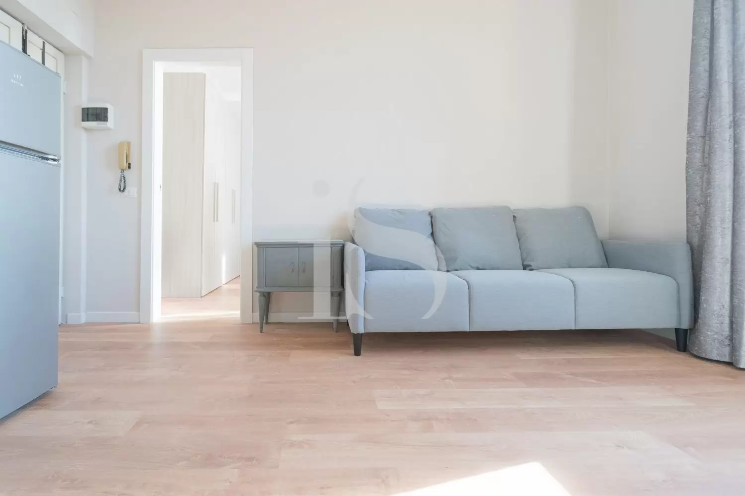 Entrando dalla porta d’ingresso blindata, ci si ritrova in un grazioso salotto che ospita un comodo divano grigio a tre posti.