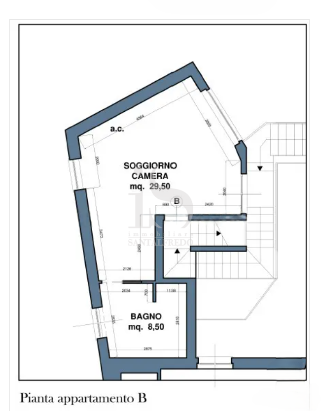 L’ appartamento di 38 mq, posto al secondo ed ultimo piano, con una planimetria ben organizzata e nell’ insieme molto godibile.